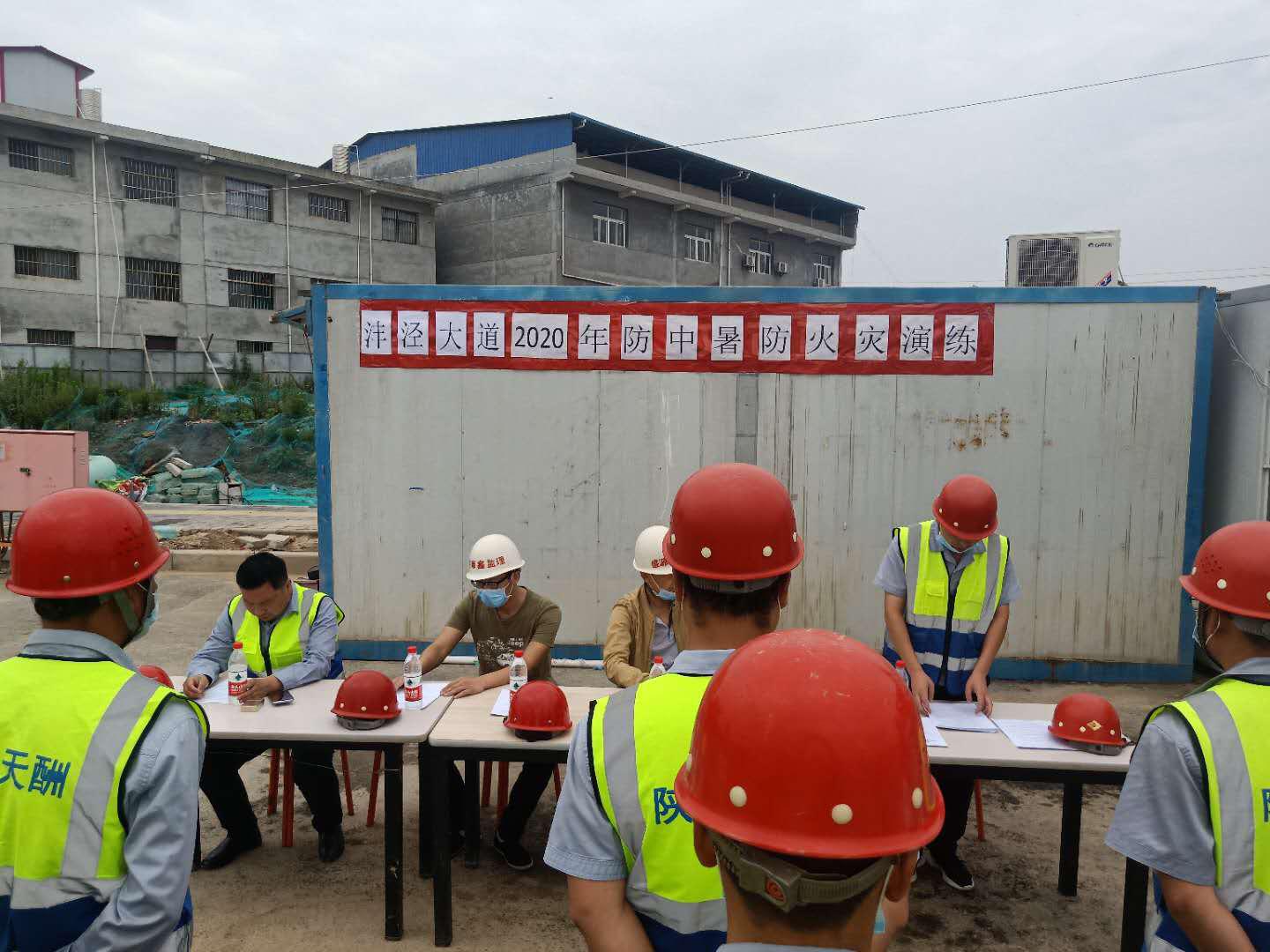 2020年6月19日,天酬公司沣泾大道项目部组织了防中暑、防火灾突发事故演练。在项目经理刘存昌的统一指挥下,现场负责人车阅,安全员韩东升,监理方以及全体项目人员和施工人员全程参与了本次演练。