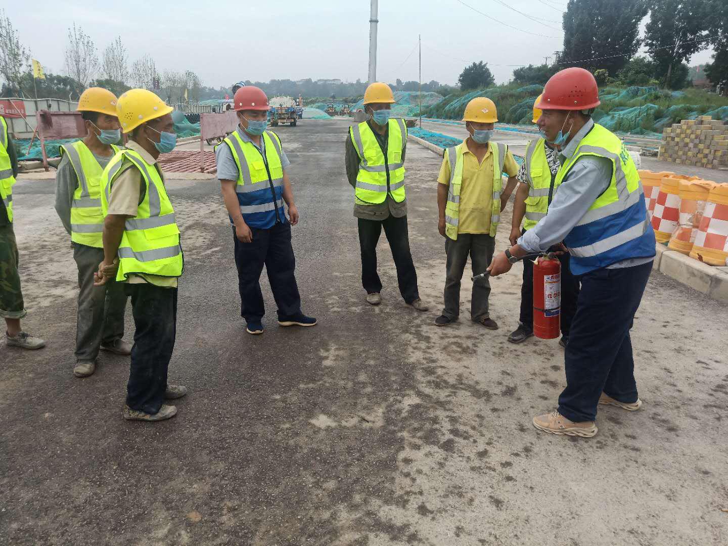 现场指导工人灭火器的正确使用方法