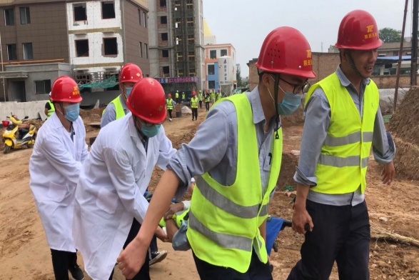 为贯彻落实2020年“安全生产月”活动精神和集团“安康杯”竞赛实施方案,2020年6月19日上午,蒲城四季花城项目部经理吴博组织陕西天酬路桥建筑工程有限责任公司蒲城四季花城项目部所有员工、陕西天酬房地产开发有限公司甲方代表、陕西通安项目管理有限公司监理人员及现场各专业分包劳务队伍,开展了高空坠落事故应急救援演练活动。