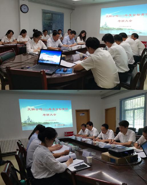 2020年7月3日,陕外经贸集团考核组组长、规划发展部部长王若辉,人力资源部党委组织部部长吕军,人力资源部党委组织部科长谢娜,规划发展部专干田苗对天酬公司2019年度目标责任完成情况进行了现场考核测评。天酬公司领导班子成员、中层管理干部及部分职工代表13人参加会议。本次会议既是目标责任考核大会,也是各项工作再部署、再动员的大会。