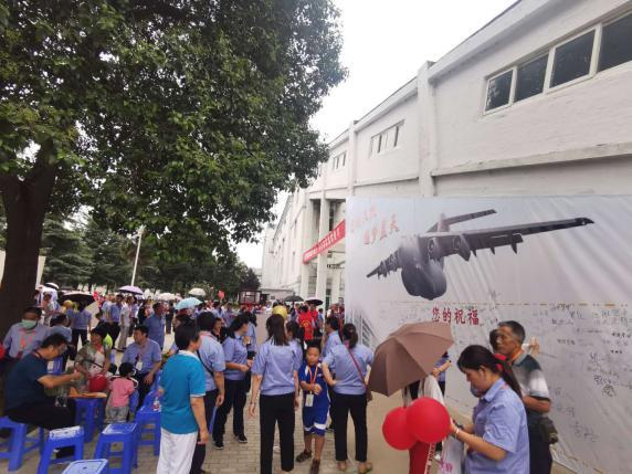 2020年9月5日,建筑分公司第一项目部全体员工确保节点,上下同心,为一一五厂建厂65周年献上厚礼。当天,广场及人工湖周边人山人海,热闹非凡。