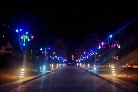项目部全体员工齐心协力,小区的面貌焕然一新。枝芽上星星、月亮、气球等各式彩灯散发着光芒,与夜色融为一体。本次节日布置工作本着节俭的原则,装饰所用材料均是以前过节时购买的彩灯,多次利用,既创造了优美亮丽的节日景观环境,又节省了开支。