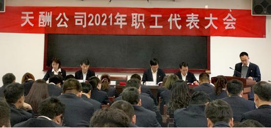 2021年3月26日下午,天酬公司顺利召开了2021年度职工代表大会。来自项目各地的公司职工代表、领导班子成员、全体中干、项目经理、室主任、党团员代表、工人代表及技术管理骨干等53人参加会议。会议由公司工会主席何立梅主持。