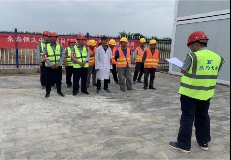 为认真贯彻落实2021年“安全生产月”活动精神,6月24日下午,永寿恒大中学建设项目部结合工程安全管理重点,进行了防中暑、中毒应急救援演练。