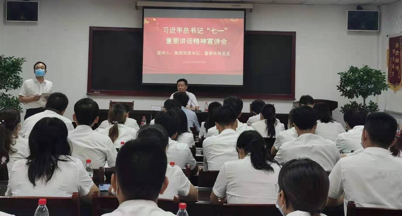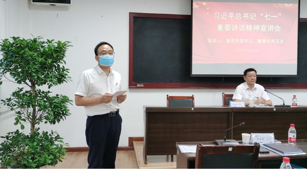 为广泛深入学习宣传贯彻习近平总书记在庆祝中国共产党成立100周年大会上的重要讲话精神,按照集团党委统一安排,8月12日,集团第一宣讲组宣讲人,集团党委书记、董事长肖玉龙赴天酬公司作学习贯彻习近平总书记“七一”重要讲话精神专题宣讲报告。天酬公司党支部书记、董事长李满星主持会议,公司中层以上领导干部,全体党员、团员共计40余人参加了此次宣讲报告会。