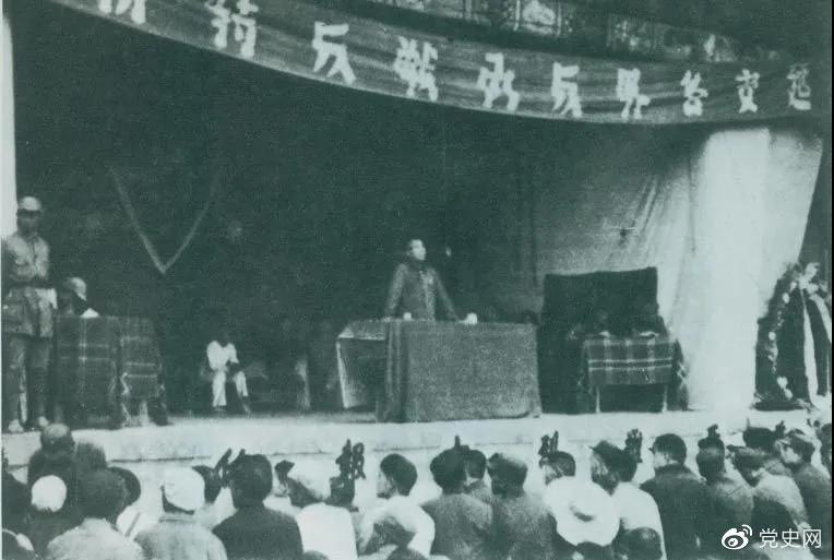 1946年7月26日,朱德在延安各界反对内战动员大会上发表讲话,号召全国人民团结起来,打退国民党军对解放区的进攻。