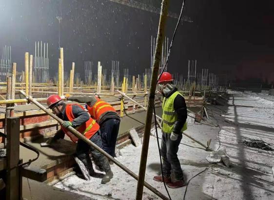 迎寒斗雪促进度 一丝不苟保质量 —永寿县恒大中学2#教学楼工程基础砼浇筑施工