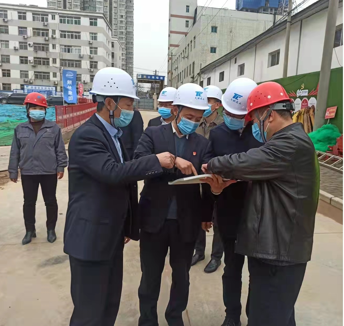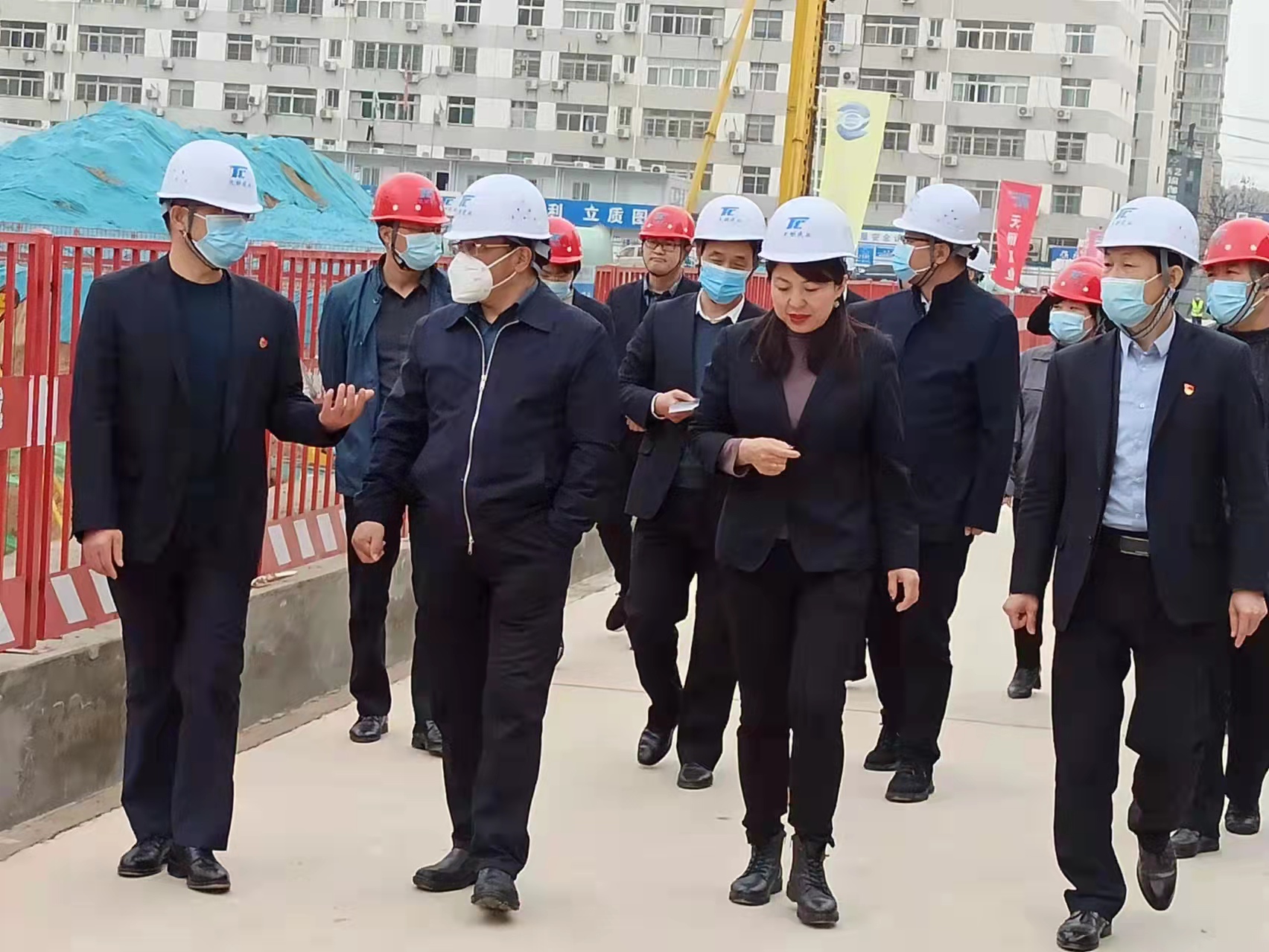 3月25日,集团公司党委副书记、总经理惠宏军,副总经理张少华,总会计师郭学鹏一行赴天酬公司进行调研指导。天酬公司党支部书记、董事长李满星,经理班子成员及相关单位负责人陪同参与调研。 惠宏军一行首先来到四季花园三期项目工地,从项目建设进度、后期规划、工地疫情防控、安全生产等方面进行了解,重点强调:该地块周边配套设施完善,开发条件较好,要将项目建设与销售回款做到统筹兼顾,加快开发建设步伐。