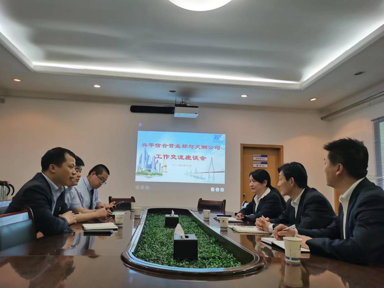 为深化银企务实合作,加强业务创新交流,2022年5月18日,兴平信用合作联社副主任刘江涛一行赴天酬公司开展工作交流会,天酬公司党支部副书记、总经理汪虹,计划财务部部长任艳滢及相关业务人员参加会议。