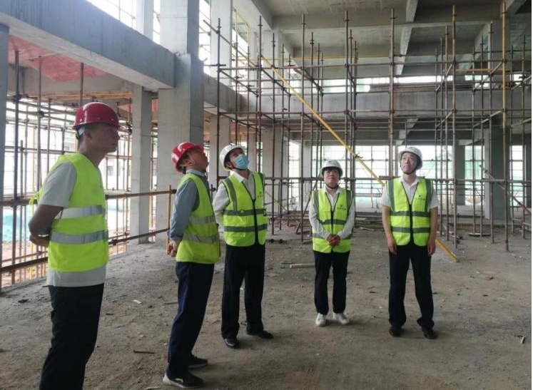 2022年5月26日,天酬公司党支部副书记、总经理汪虹,副总经理王根利赴永寿县恒大中学建设项目检查指导工作,建筑分公司经理王芳银、项目技术负责人袁仁章陪同。 上午,汪虹一行前往项目建设一线,对1#综合楼、2#教学楼施工质量进行全面检查,对项目目前存在问题的进行详细了解。汪虹强调:要加强施工细部的质量控制,做好施工过程中的质量检查;要保证施工进度,在安全和质量并行的前提下确保按期完成合同任务,打造天酬品牌,提升企业形象和市场竞争力,为公司市场开发打下坚实基础。