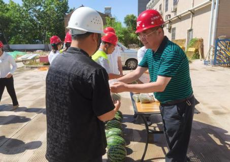 慰问中,蒙晓记询问了一线职工生活、工作等情况,叮嘱职工在保证工作质量和进度的前提下要注意身体,做好高温防暑工作,并代表集团公司送上了西瓜、牛奶、绿豆等防暑降温品,为烈日炎炎下依然坚守在项目施工一线的职工送来丝丝清凉和浓浓关怀。