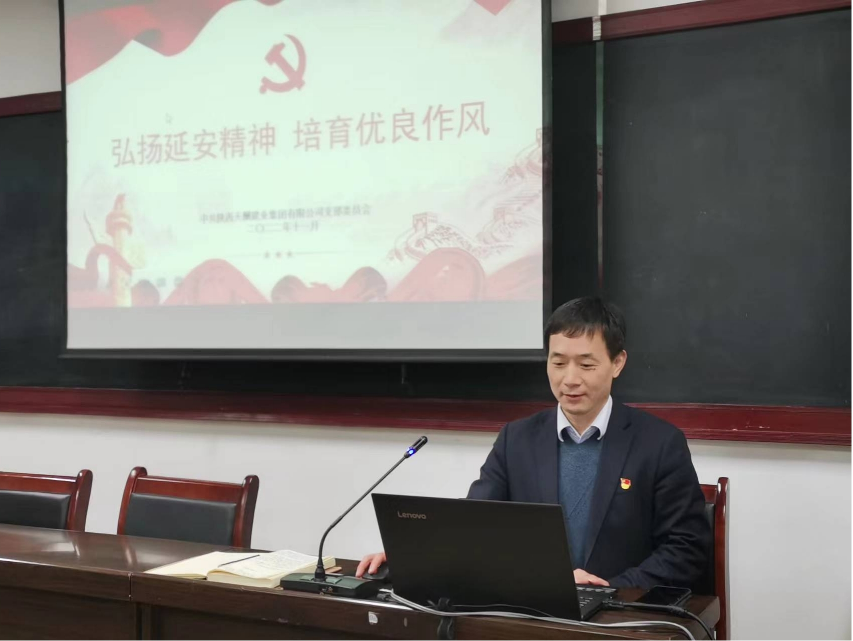 为深入学习宣传贯彻党的二十大精神,扎实推动作风建设专项工作走深走实,增强党员干部职工用延安精神汲取思想和行动“营养”、锤炼工作作风的思想自觉,2022年11月30日,天酬公司党支部组织开展“弘扬延安精神 培塑优良作风”专题培训,强化干部使命担当,提高履职尽责能力。会议由纪检委员王根利主持。