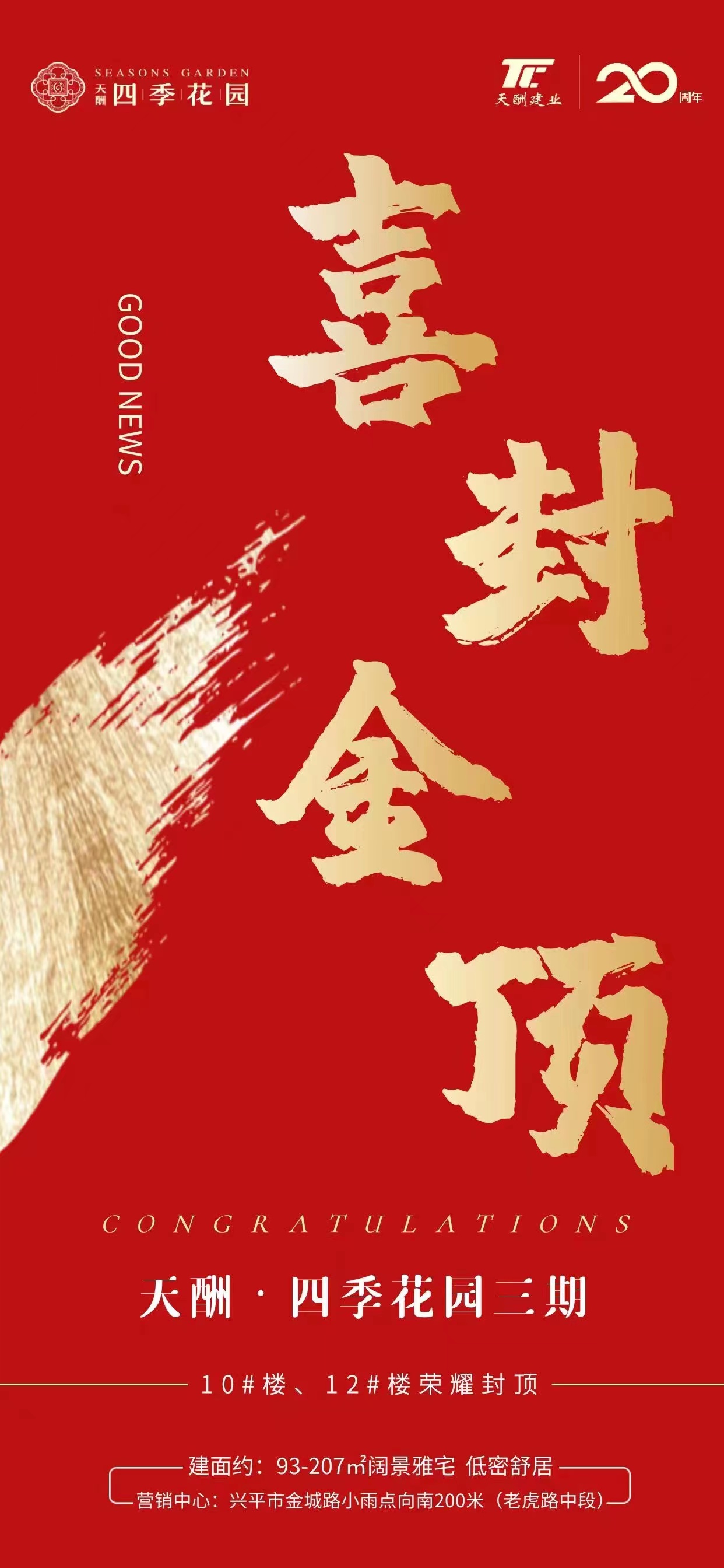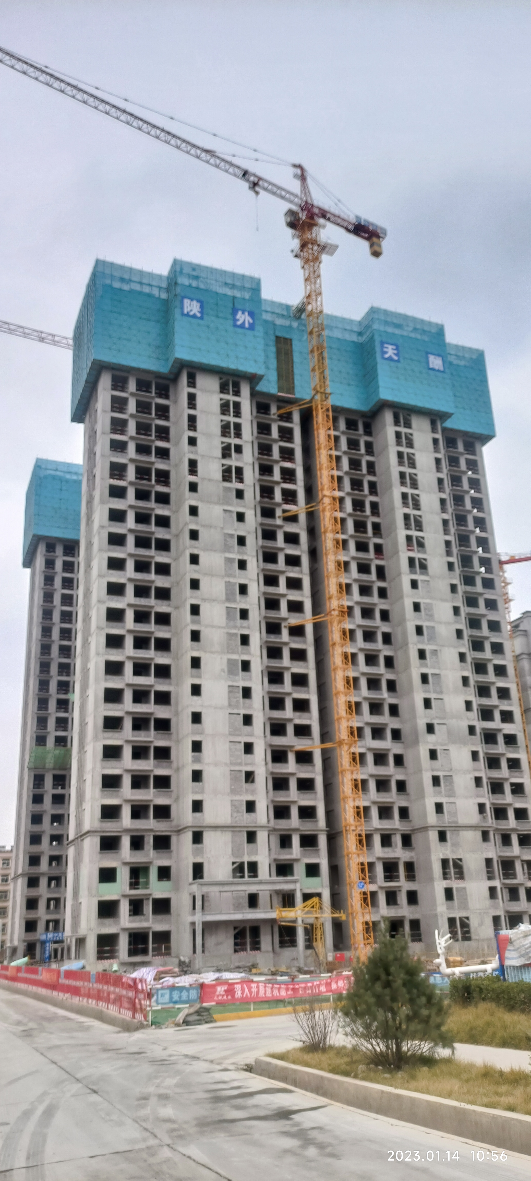 2023年1月14日,新年即将到来之际,天酬·四季花园三期项目10#、12#楼顺利封顶。陕外经贸集团天酬建筑分公司肩负城市建设使命,本着对项目、对业主负责的态度,稳步推进施工进度,目前项目三栋住宅楼已全面封顶,年后将全面转入二次结构和装饰装修阶段。