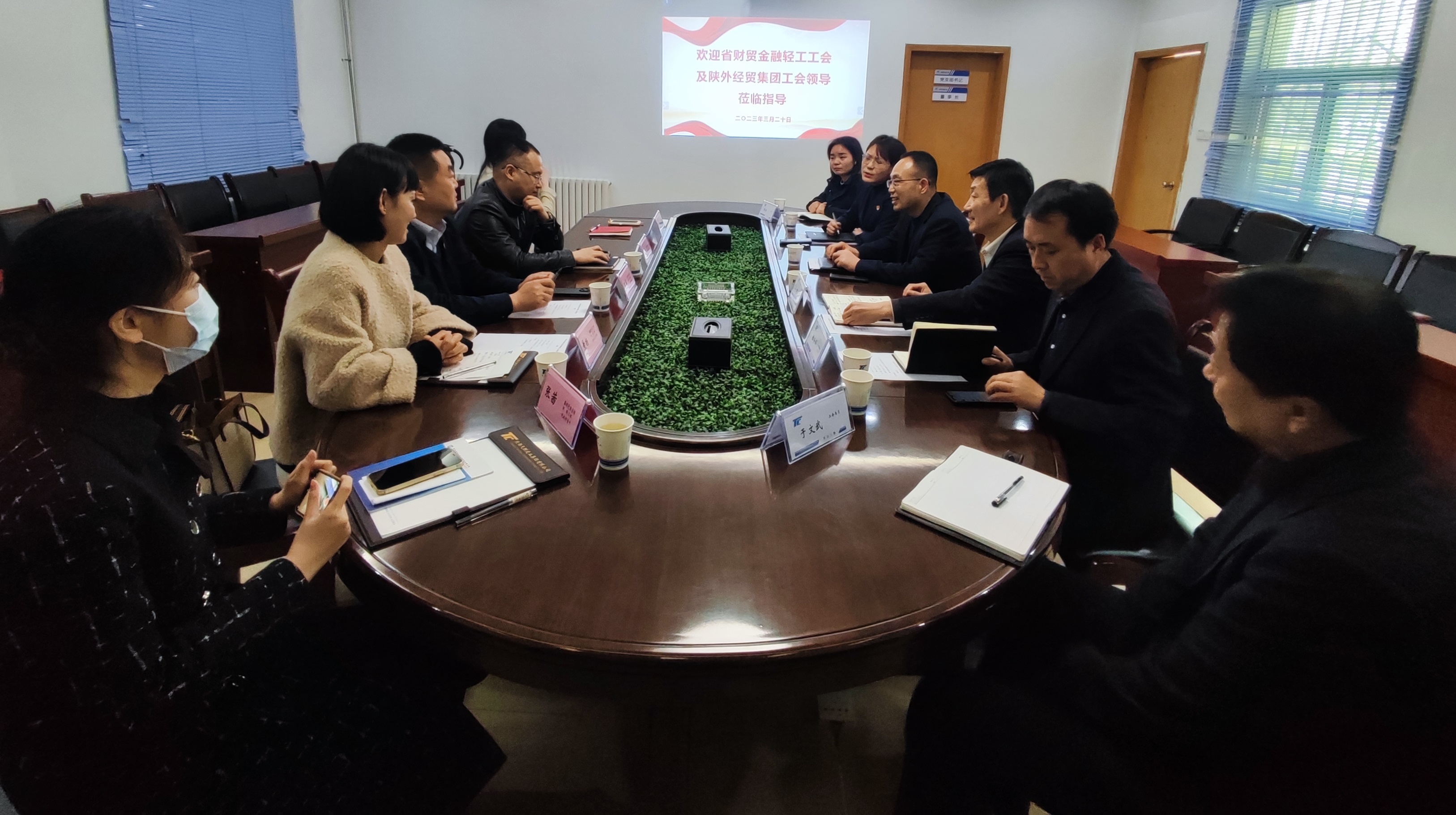 2023年3月20日,陕西省财贸金融轻工工会副主席朱彬一行赴陕外经贸集团天酬公司,颁发“模范职工之家”奖牌和荣誉证书,并对公司职工之家建设情况进行指导。