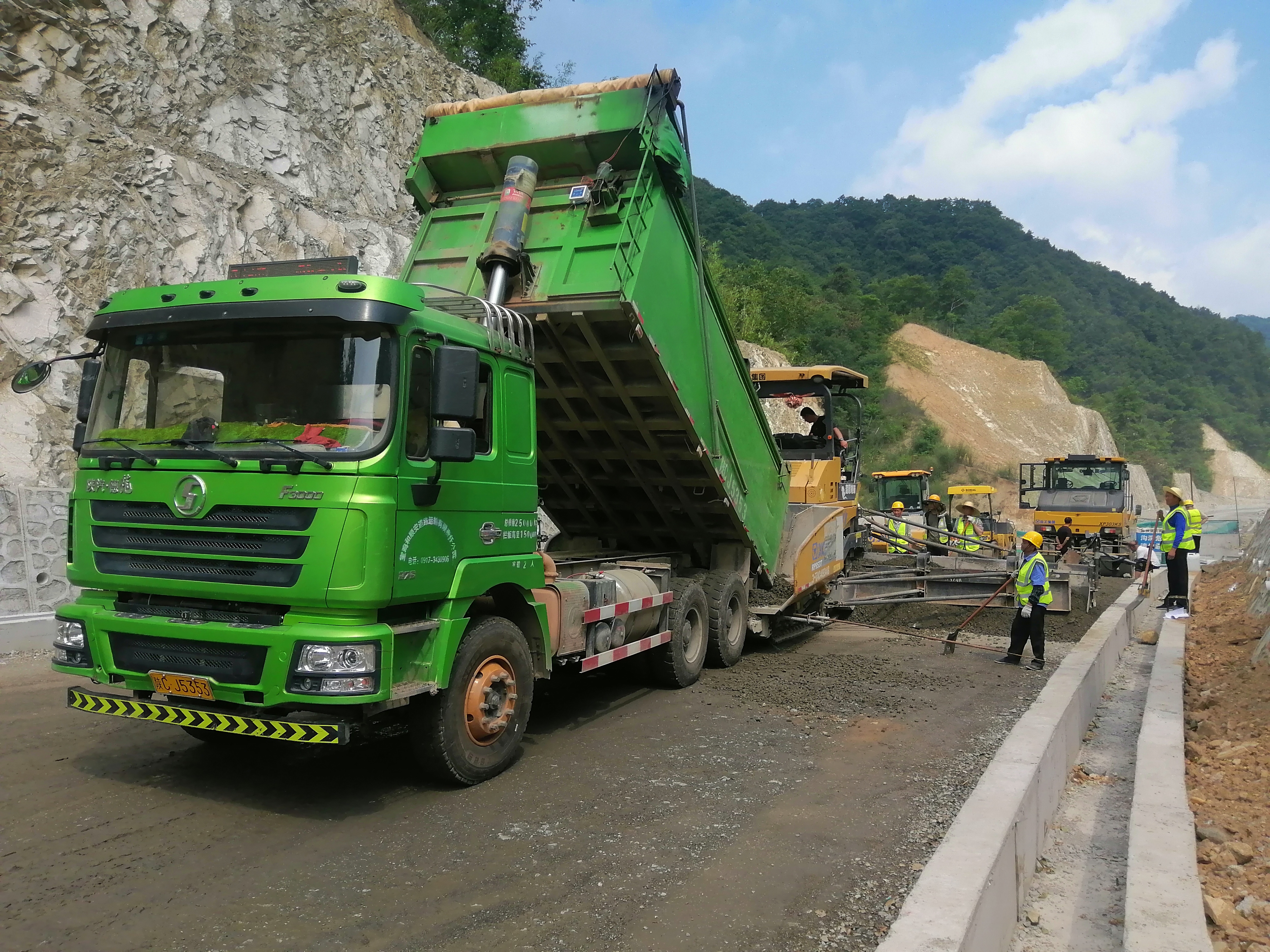 陕外集团天酬建业公司所属路桥分公司G316国道改造项目水泥稳定石试验段顺利摊铺
