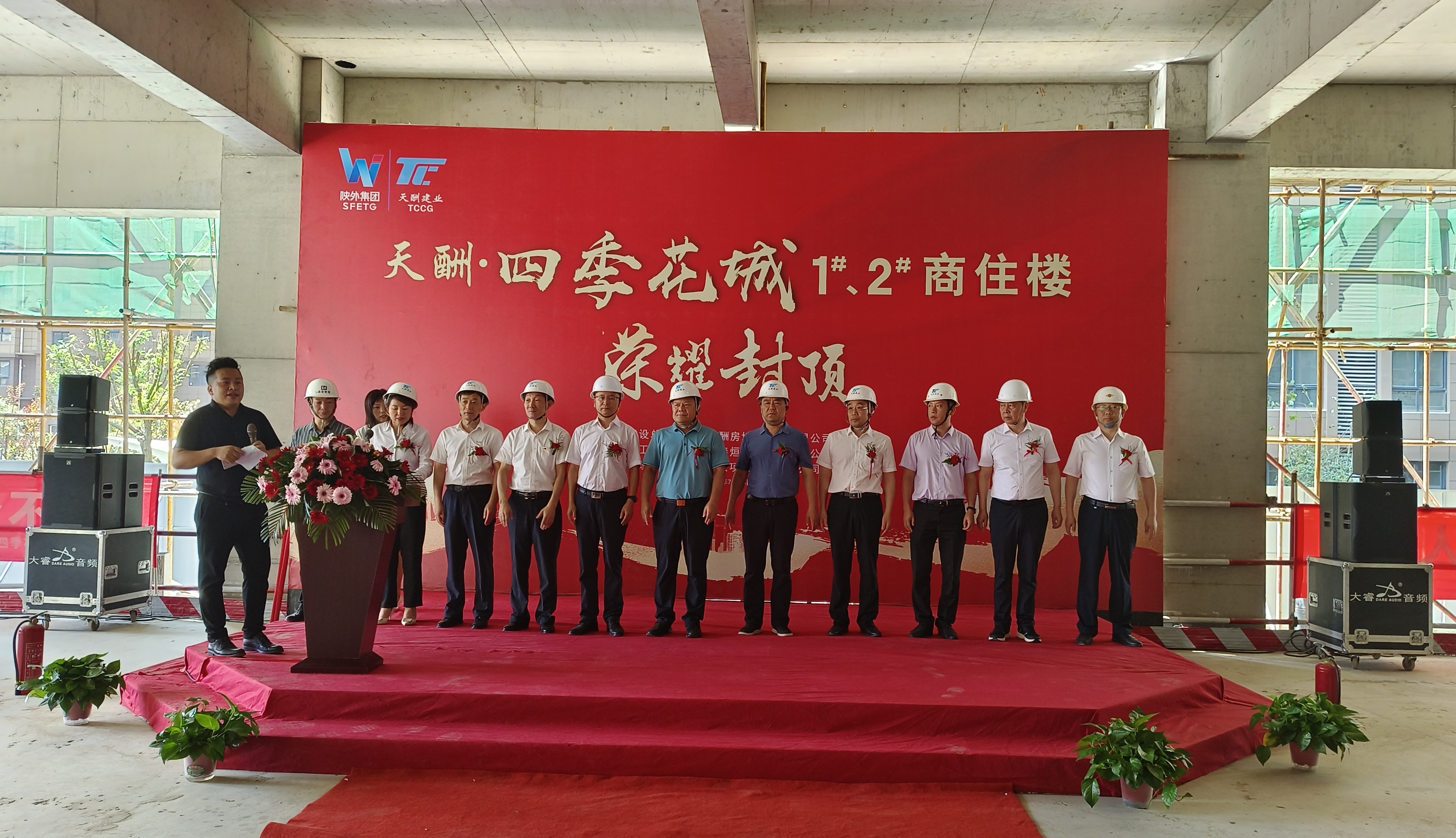 2023年7月26日,陕外集团天酬建业公司蒲城四季花城1#、2#商业综合楼顺利封顶,陕外集团副总经理任军民出席本次封顶仪式。