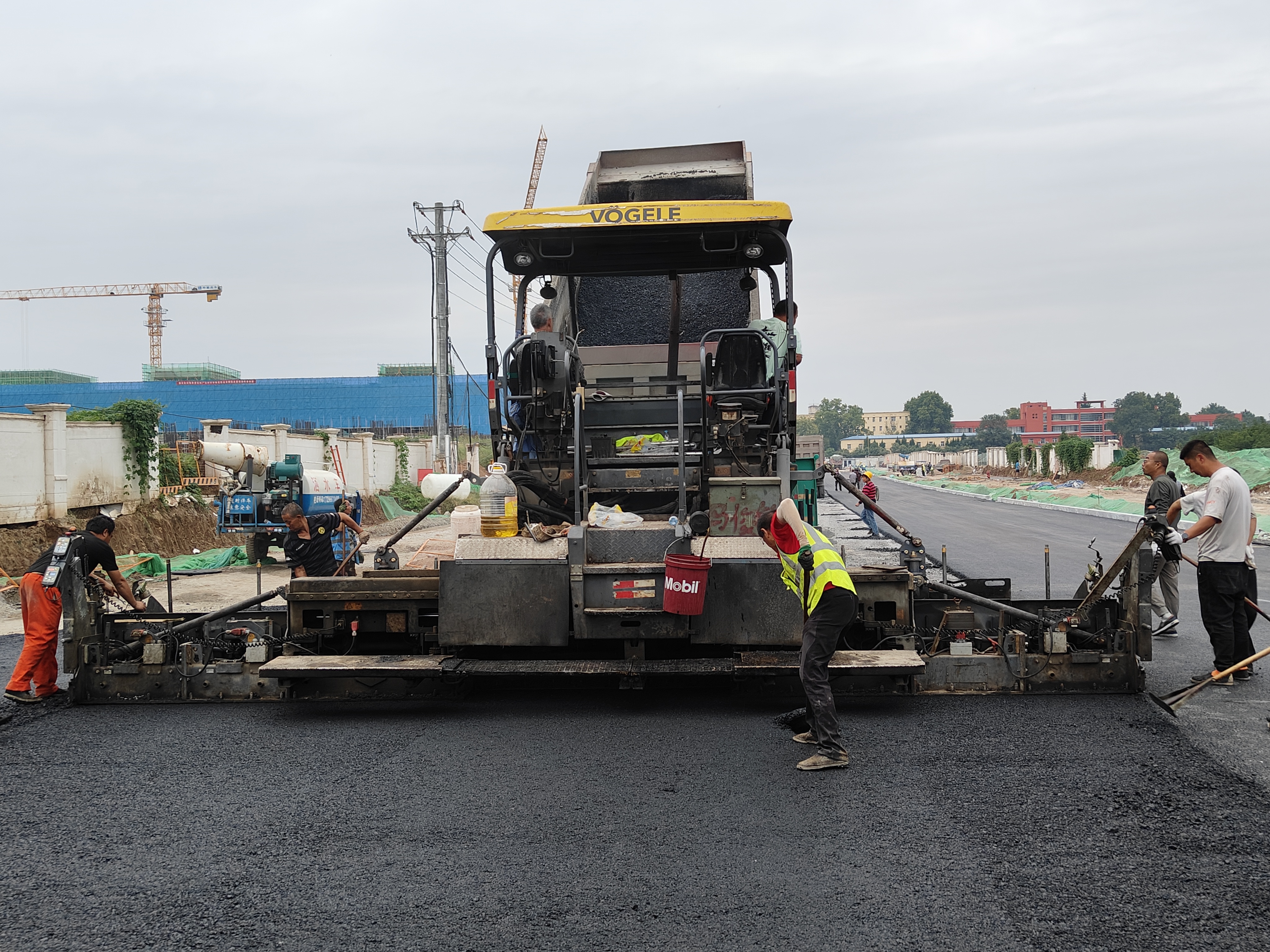 陕外集团天酬建业公司所属路桥分公司原点东一路项目沥青混凝土顺利摊铺
