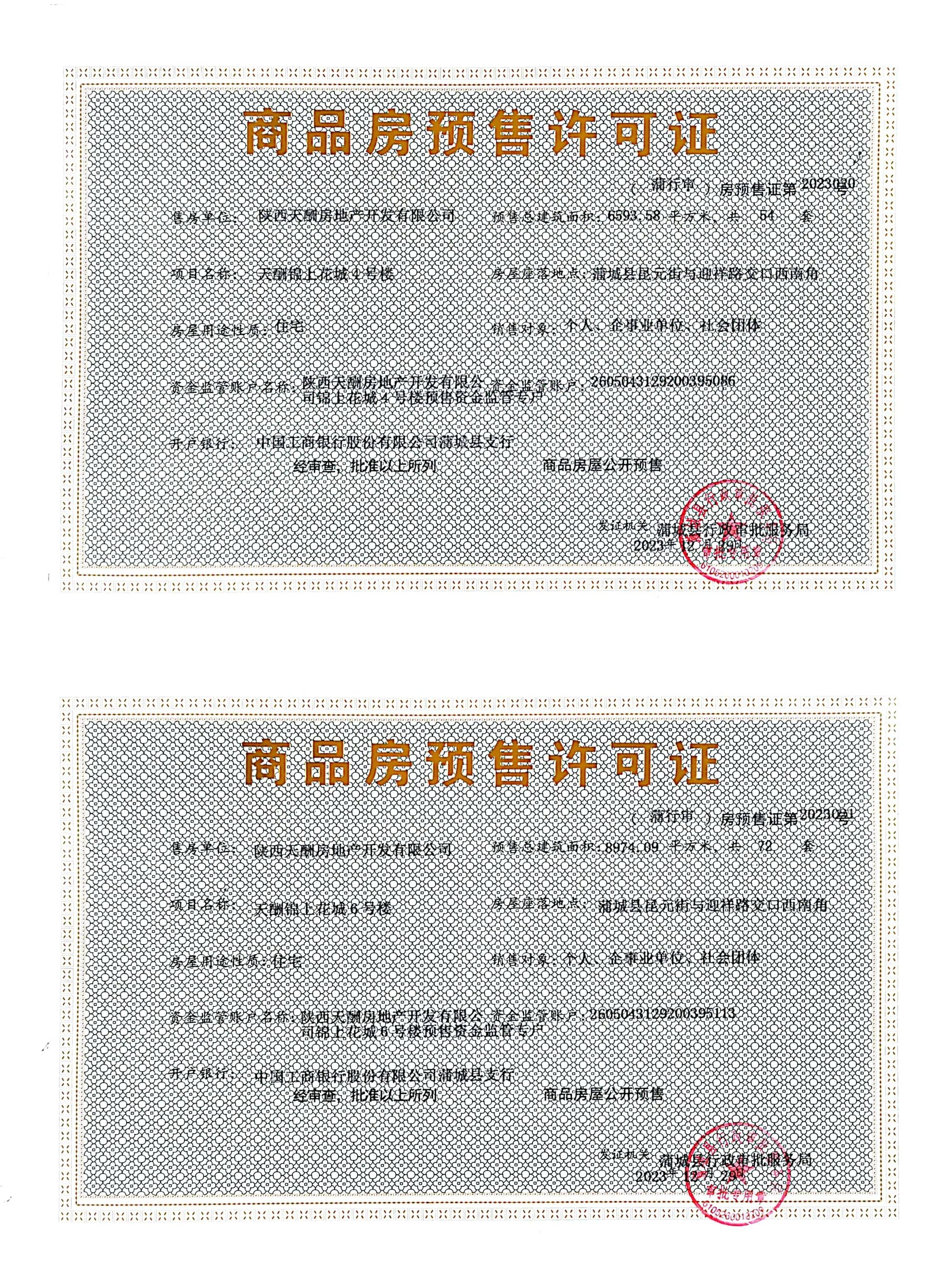 2023年12月29日,陕外集团天酬建业公司锦上花城4#、6#住宅楼取得预售许可证,标志着项目符合相关法律法规和规定,具备了合法销售的条件。