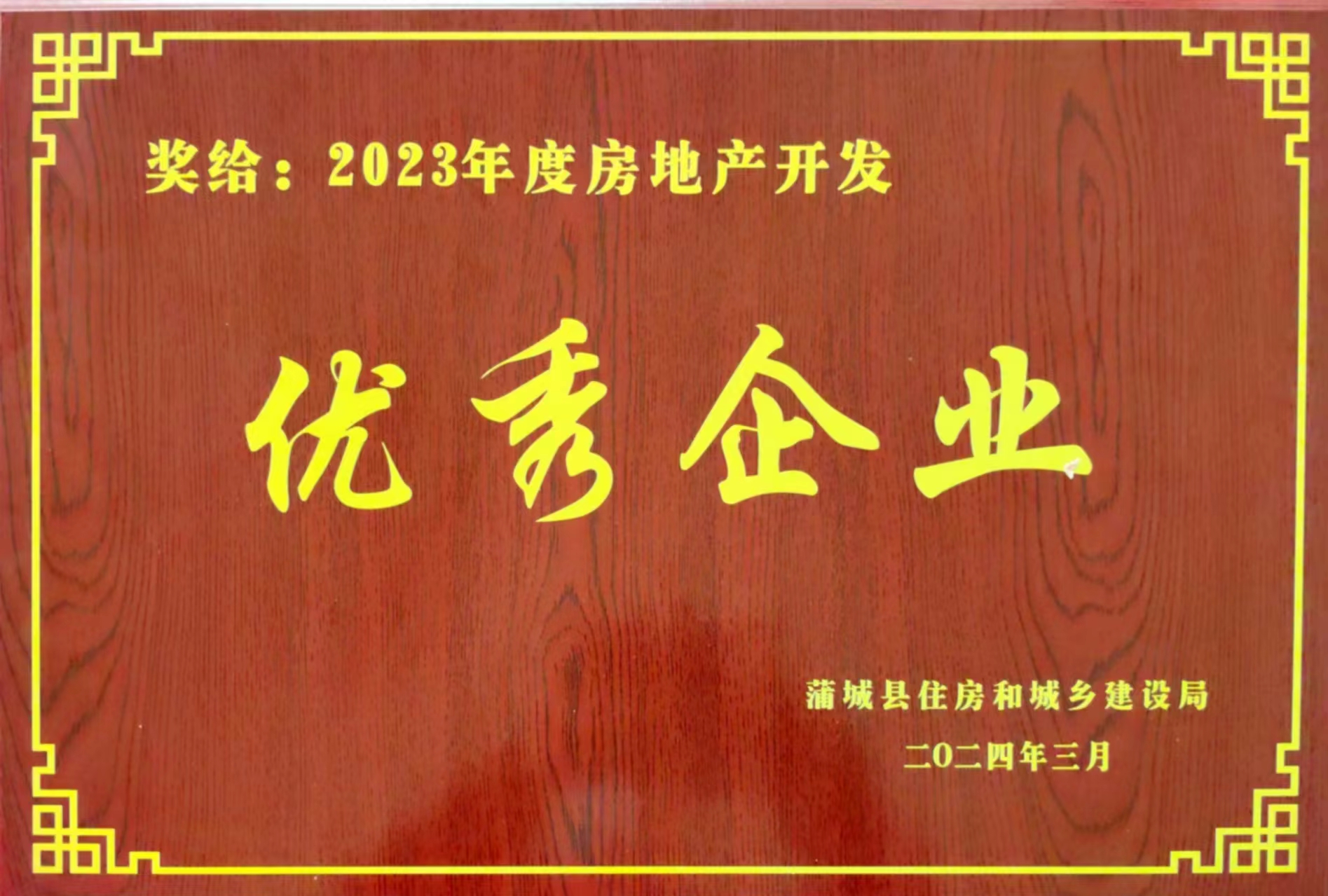 陕外集团天酬建业公司所属房地产公司荣获2023年蒲城县优秀房地产开发企业