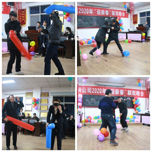 在各个精彩的演出节目之间,还穿插了各类游戏、抽奖环节:气氛紧张又不失欢乐的“蒙眼互打”、锻炼同组成员团结协作、互相配合能力的“踩气球”,以及考验参与者肢体及语言表达能力的猜词游戏、令人激动而又期待的抽奖环节,将现场的气氛推向了一个又一个的高潮。