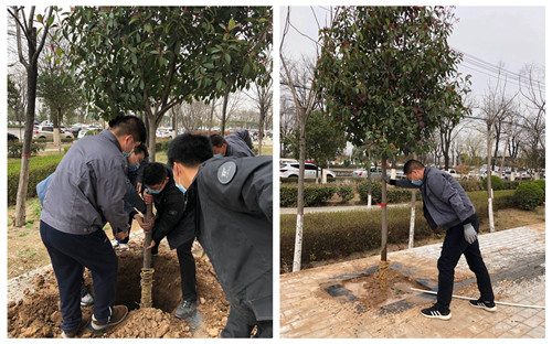阳春三月,大地复苏。天酬公司蒲城四季花城各项目部员工在迎战疫情、复工复产之际,又迎来了植树的季节,大家自发组织起来,对小区3号楼北侧进行绿化改造。
