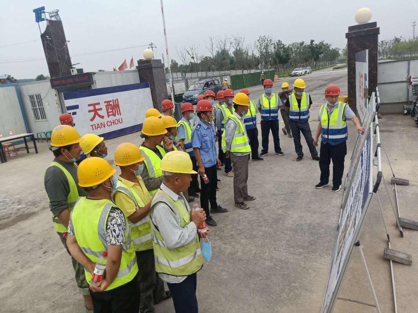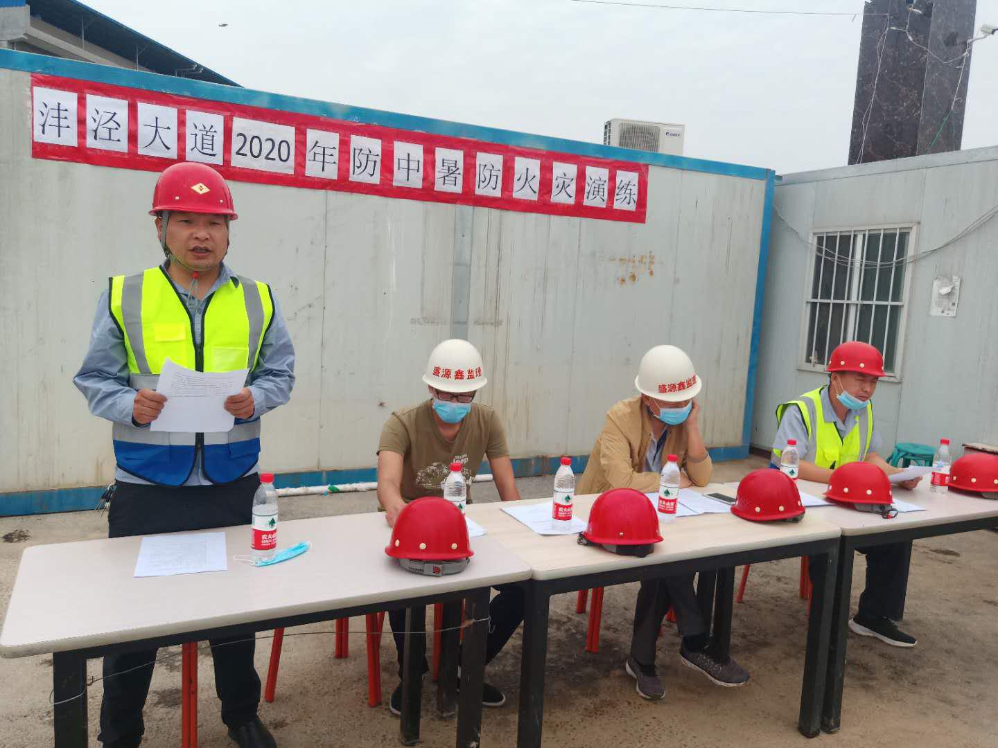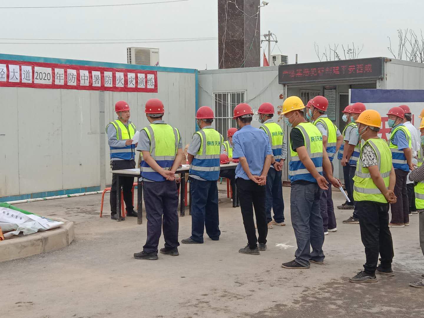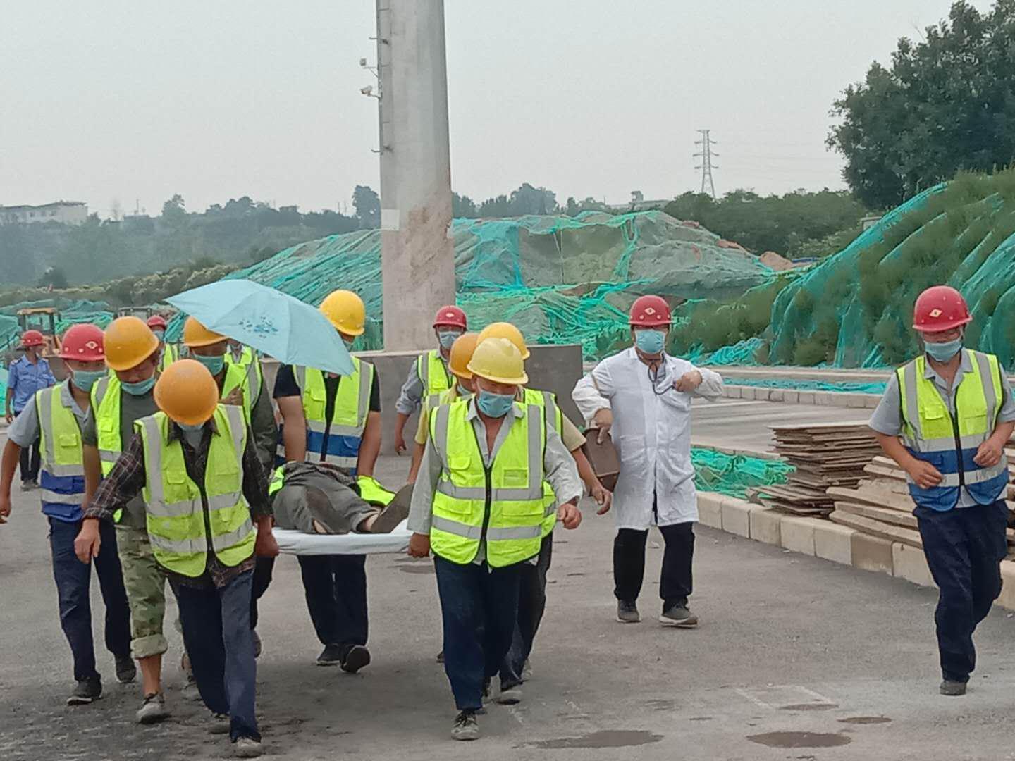 2020年6月19日,天酬公司沣泾大道项目部组织了防中暑、防火灾突发事故演练。在项目经理刘存昌的统一指挥下,现场负责人车阅,安全员韩东升,监理方以及全体项目人员和施工人员全程参与了本次演练。