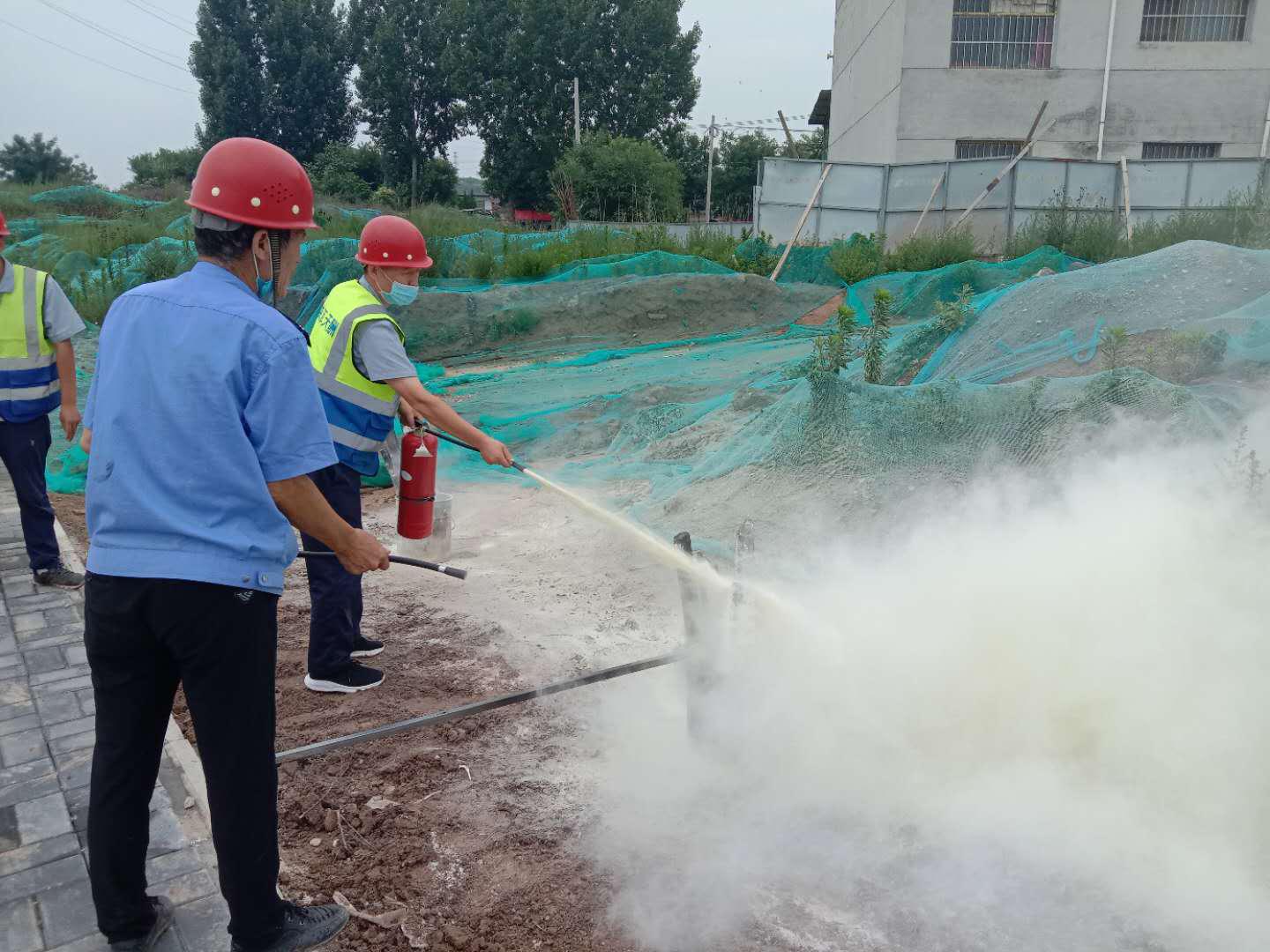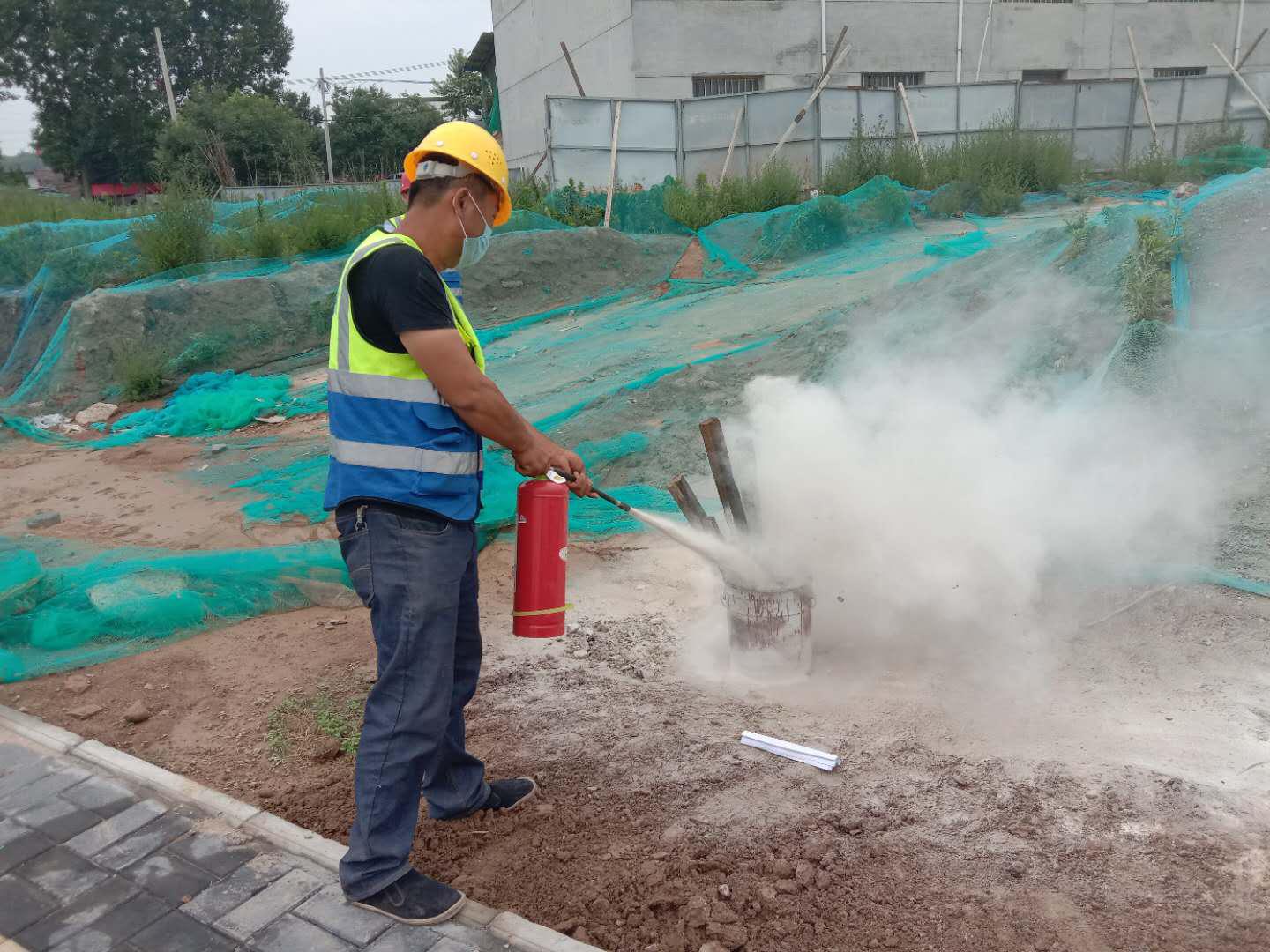 现场指导工人灭火器的正确使用方法
