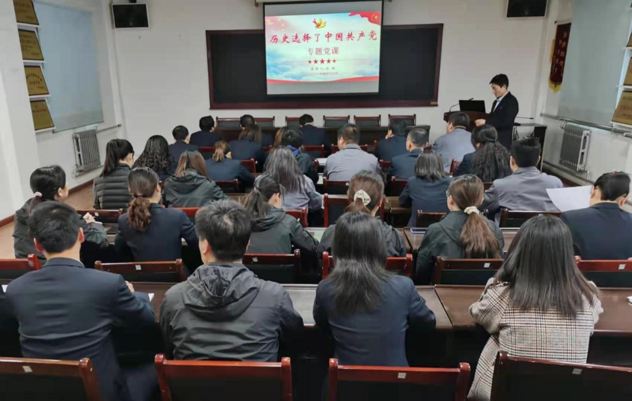 本次党史学习教育专题党课由党支部书记汪虹主讲。汪书记以《中国共产党百年光辉历史》为题,从重温党的100年光辉历程,深刻感悟党的初心使命、践行初心使命,必须担当作为、走进新时代迈向新征程三个方面,详细讲述了中国共产党的初心使命和百年奋斗的基本经验,从三次伟大飞跃等多个层面进行深入讲解,具有很强的针对性和指导性,使大家对党史的了解更加深入。 课上,汪书记与职工交流讨论学习感受,中国共产党百年历史,是一部不懈奋斗史、思想探索史、自身建设史。在全面建设社会主义现代化强国新征程上,全党全国各族人民要紧密团结在以习近平同志为核心的党中央周围,以习近平新时代中国特色社会主义思想为指导,高举中国特色社会主义伟大旗帜,不忘初心、牢记使命,增强“四个意识”、坚定“四个自信”、做到“两个维护”,全面贯彻党的基本理论、基本路线、基本方略,迎难而上,开拓进取,为实现第二个百年奋斗目标、实现中华民族伟大复兴的中国梦而不懈奋斗!