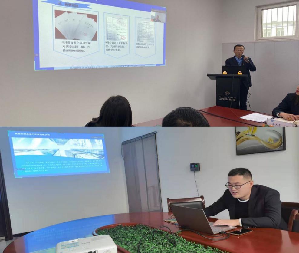 由于疫情原因,会议采取线上和线下相结合的方式举行。 会上,梁美霞对房地产公司2021年度各项经营指标完成情况及2022年度经营目标进行了简要汇报。姚海力、马步海两位二级目标责任人从2021年主要工作完成情况、存在的问题、2022年工作计划和目标责任书对标等方面进行述职述廉,回顾成绩、总结不足,制定计划、努力进取,在直面问题的同时提出改进措施。