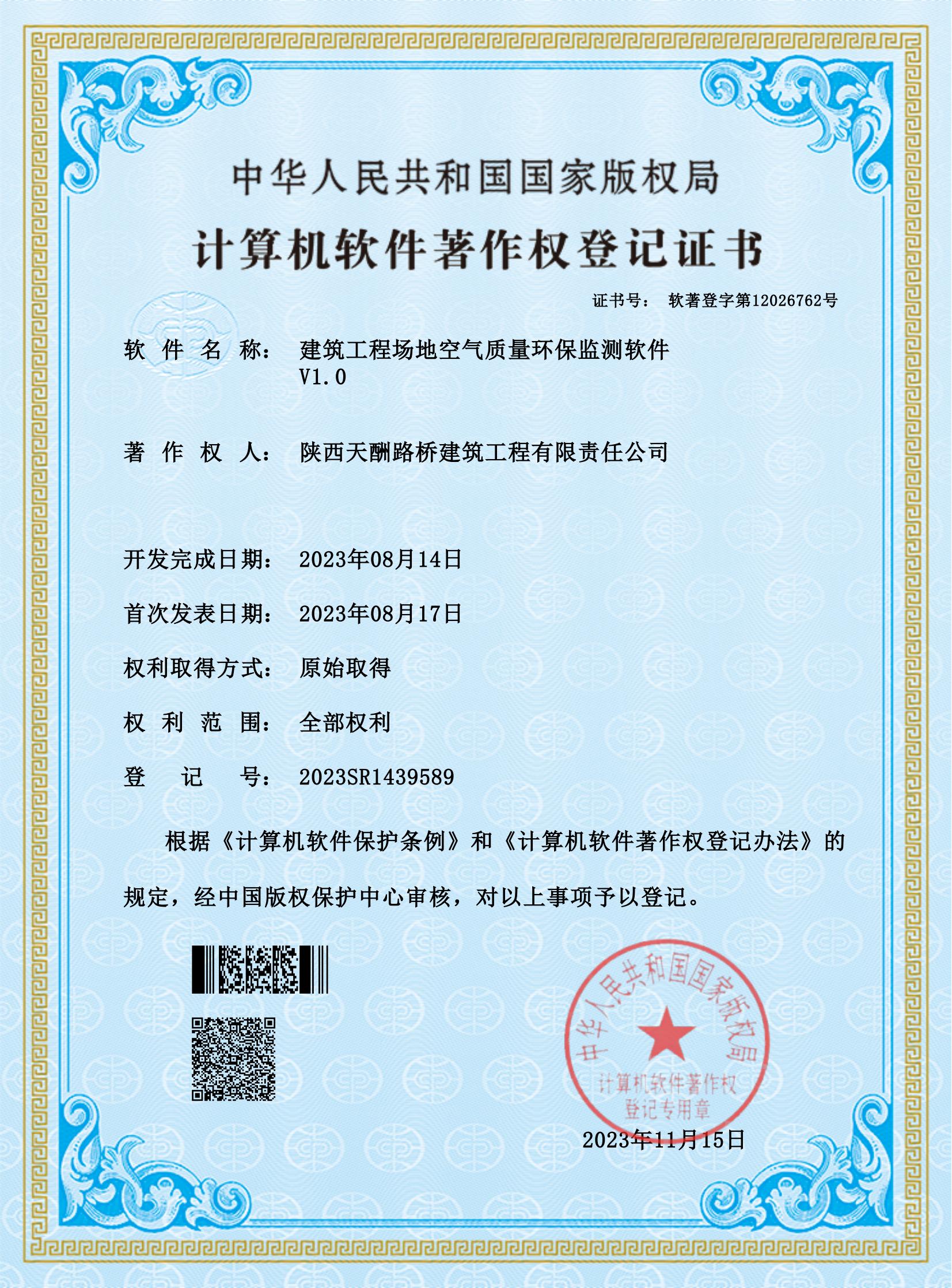11月15日,陕外集团天酬建业公司所属建筑分公司获得中华人民共和国国家版权局审核颁发的三项计算机软件著作权证书。本次取得证书的三项软件著作权分别是“建筑工程场地空气质量环保监测软件V1.0”、“建筑工程能耗数据信息节能监测软件V1.0”、“建筑施工用材料综合计算优化软件V1.0”。