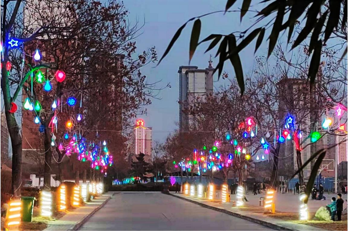 项目部全体员工齐心协力,小区的面貌焕然一新。枝芽上星星、月亮、气球等各式彩灯散发着光芒,与夜色融为一体。本次节日布置工作本着节俭的原则,装饰所用材料均是以前过节时购买的彩灯,多次利用,既创造了优美亮丽的节日景观环境,又节省了开支。
