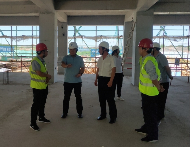 2022年6月29日,陕外经贸集团副总经理任军民,党委宣传部、群工部、统战部部长张斌,企业管理部副部长杨蕾一行赴天酬公司永寿恒大中学建设项目检查指导工作,天酬公司副总经理王根利、经营管理部主任于文武、建筑分公司副经理来鹏陪同。
